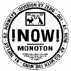 DIVISION BY ZERO, Amsterdam, is a new label dedicated to the new electronic music scene. Its first release is a picture disk from MONOTON called "NOW !"